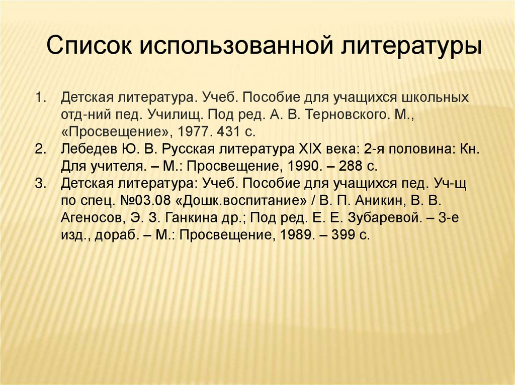 Список использованной литературы1. Детская литература. Учеб. Пособие для учащихся школьных