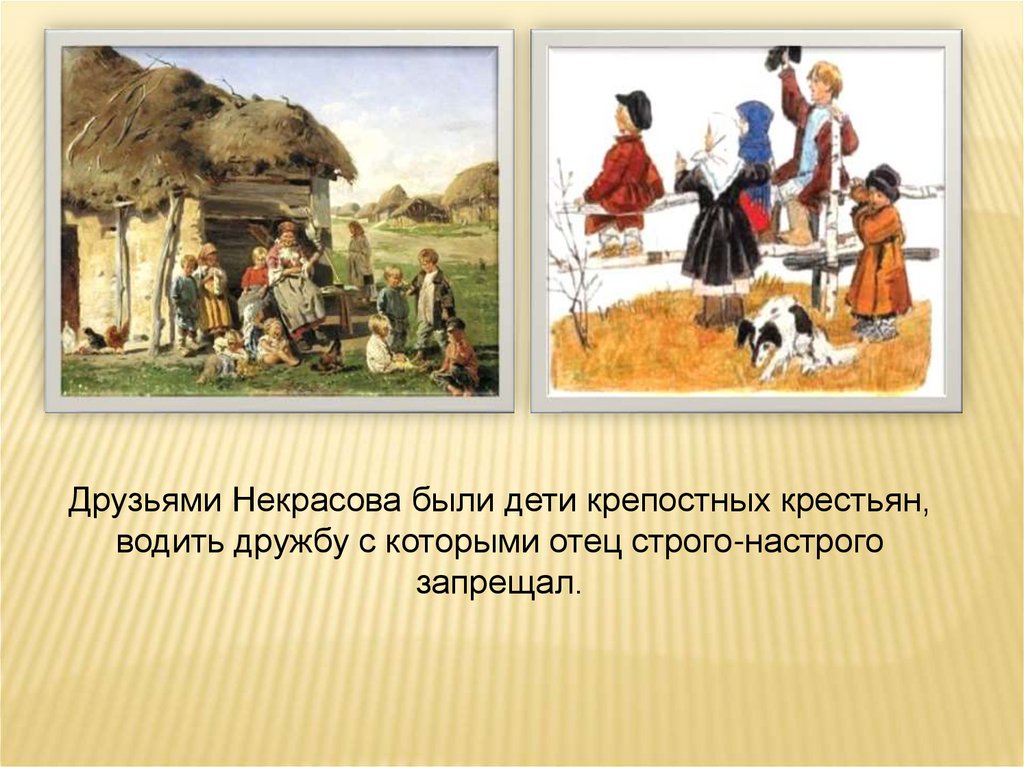 Друзьями Некрасова были дети крепостных крестьян,водить дружбу с которыми отец строго-настрого