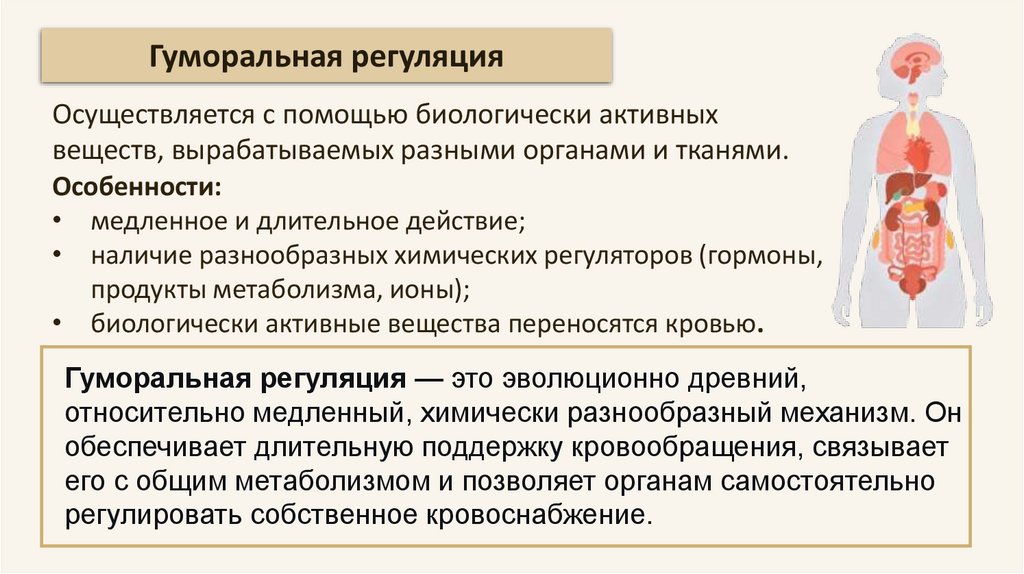 Гуморальная регуляцияОсуществляется с помощью биологически активных