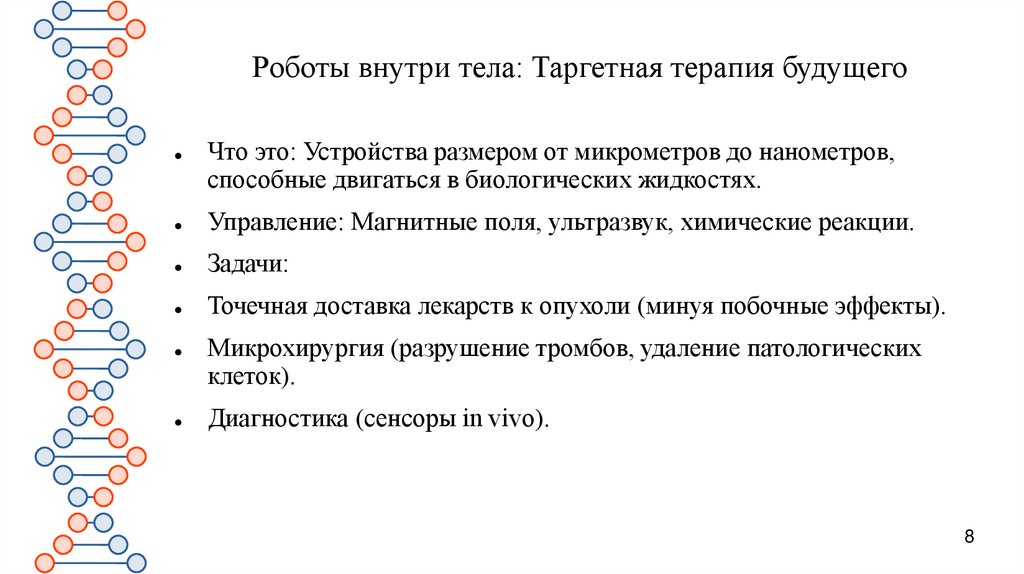 Роботы внутри тела: Таргетная терапия будущегоЧто это: Устройства размером от микрометров до нанометров,