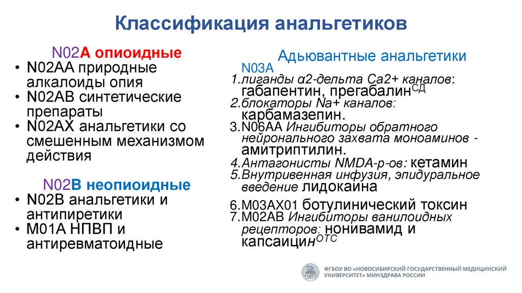 Предоставить систематизированную информацию обанальгетических препаратах, их классификации,