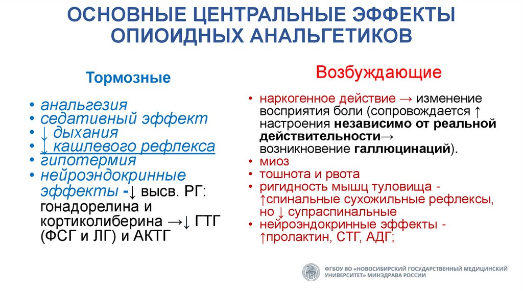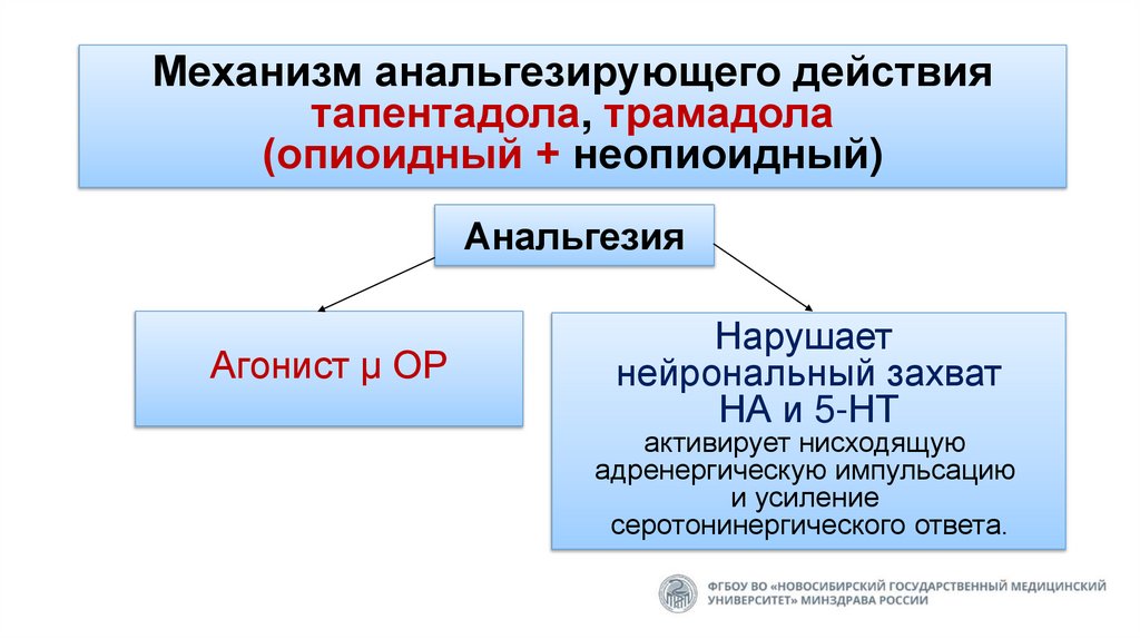 рецепторов мозга →↓интенсификацию боли и закрепление