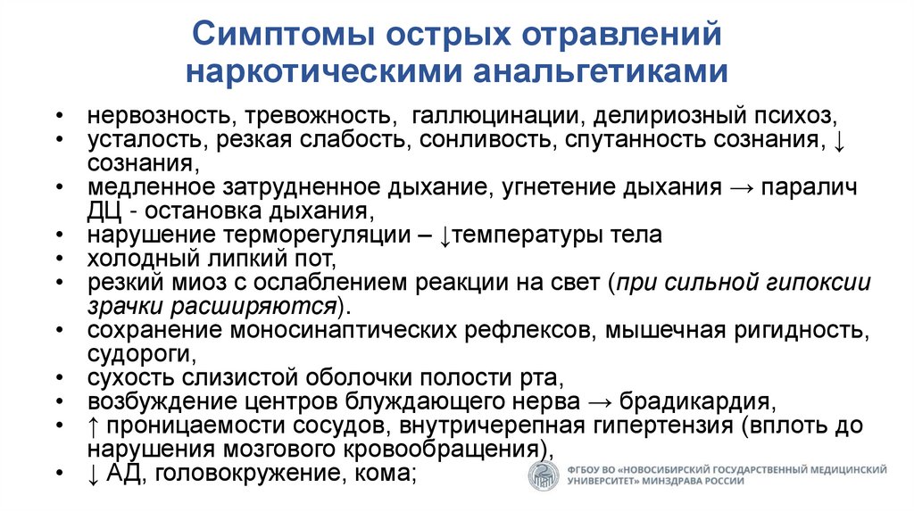 4. Какие будут симптомы при отравлении опиатами и меры помощи?
