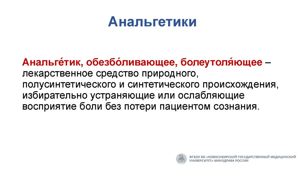 Анальге́тик, обезбо́ливающее, болеутоля́ющее –лекарственное средство природного,