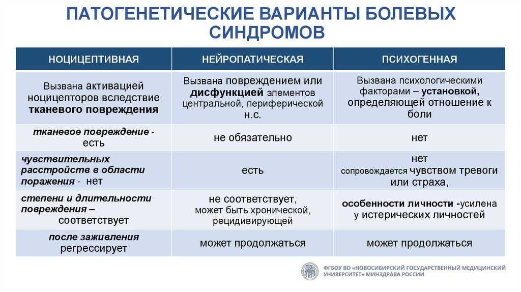8. ПАТОГЕНЕТИЧЕСКИЕ ВАРИАНТЫ БОЛЕВЫХ СИНДРОМОВ