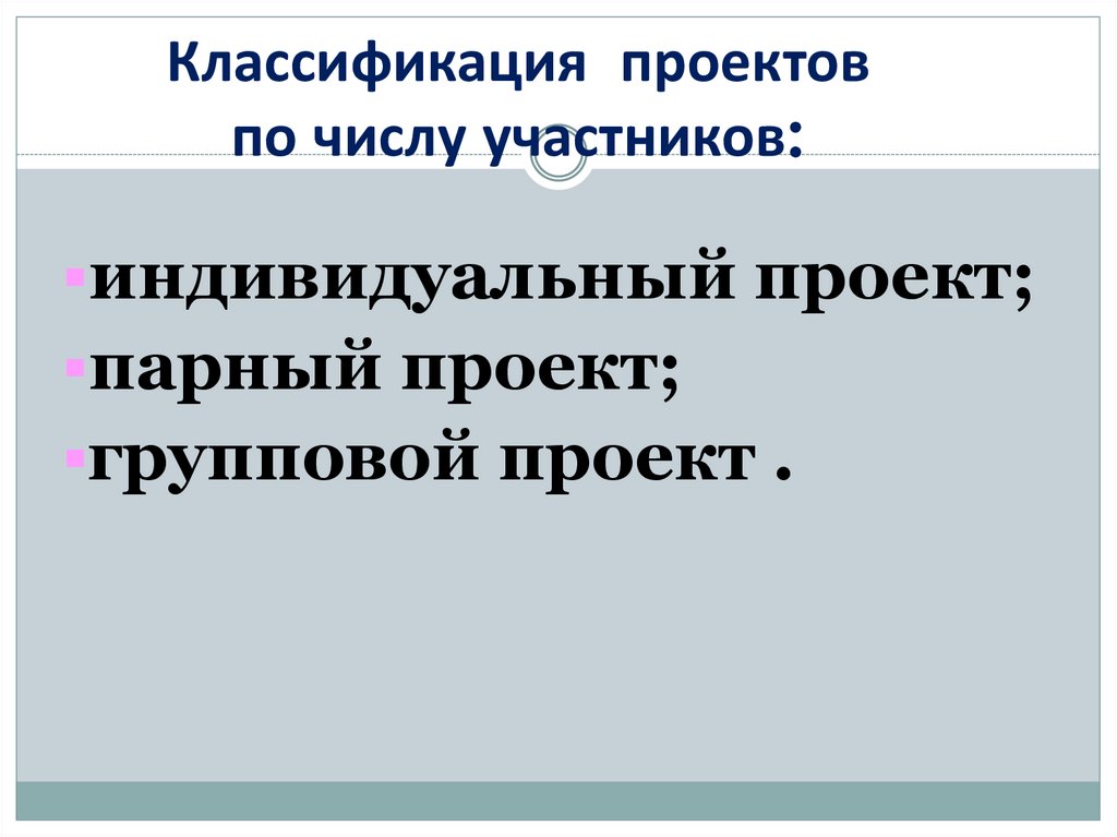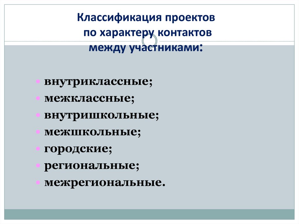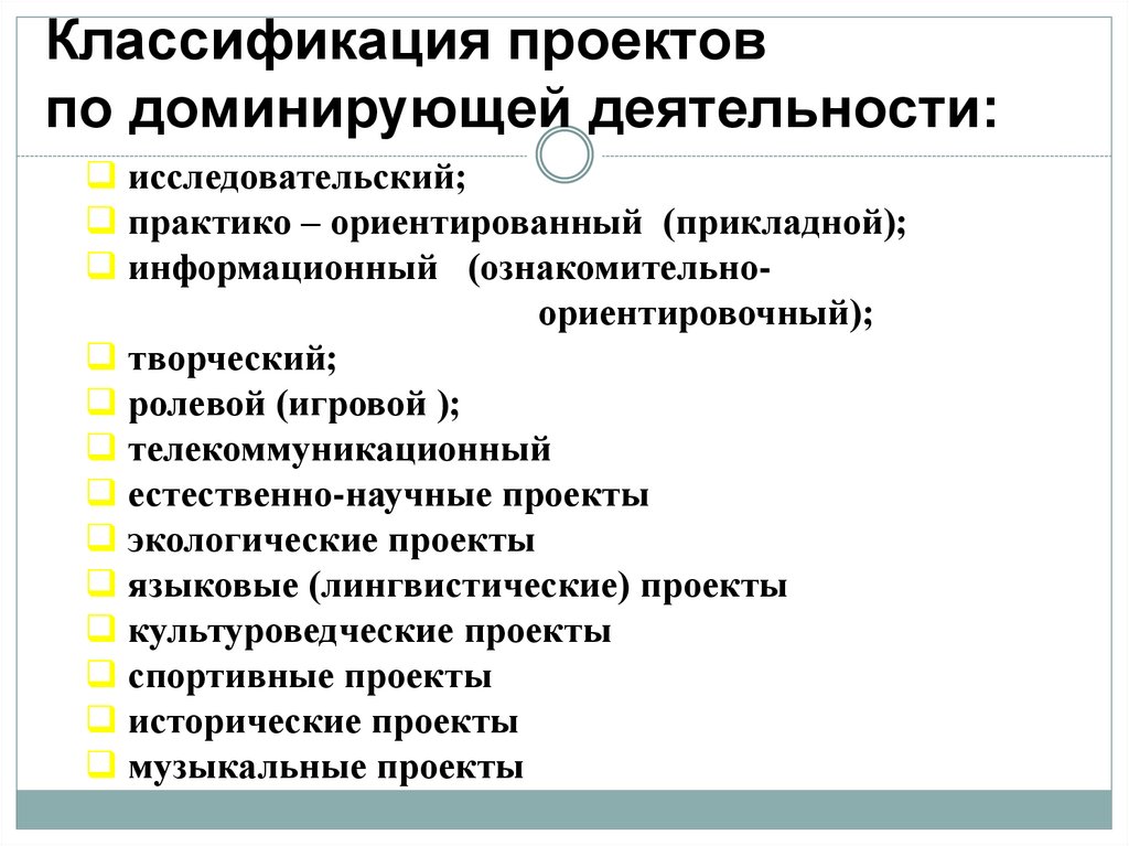 Классификация проектовпо доминирующей деятельности:
