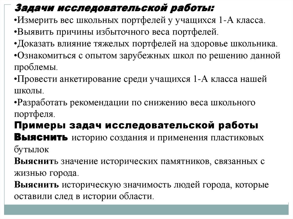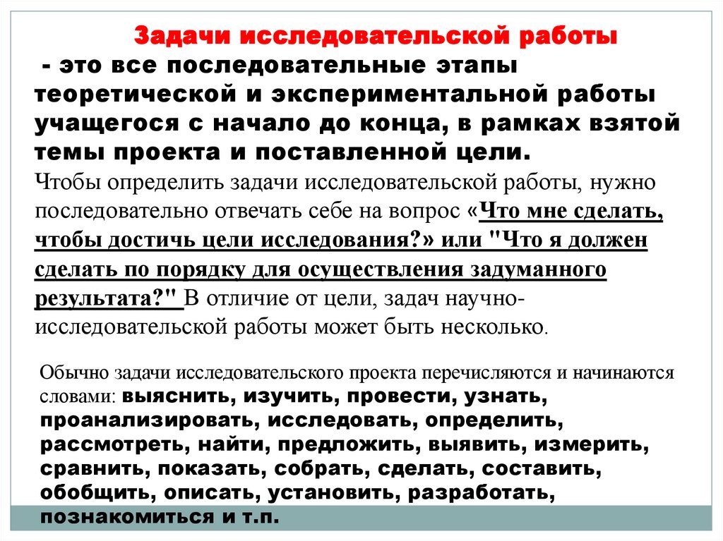 5. Задачи исследовательской работы