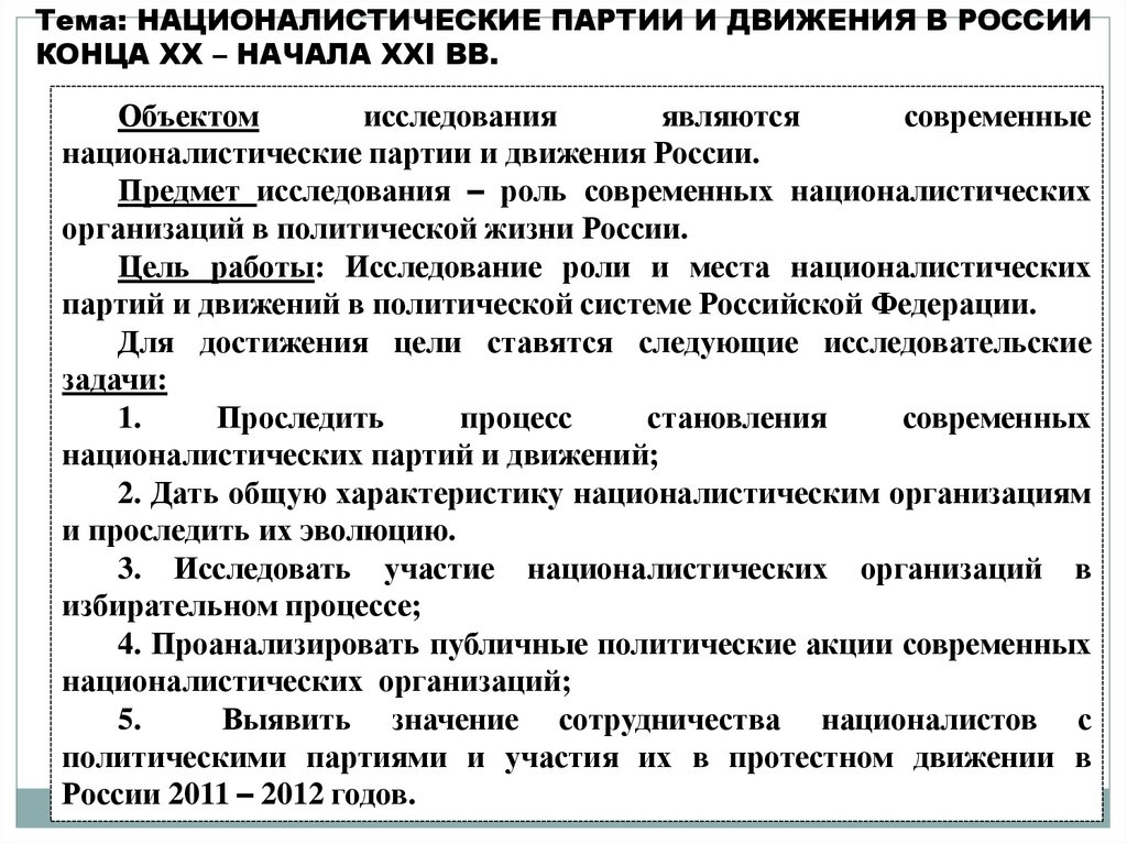 Обозначение задач исследования.