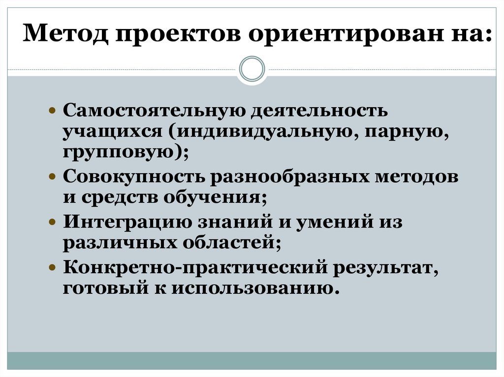 5. Метод проектов ориентирован на: