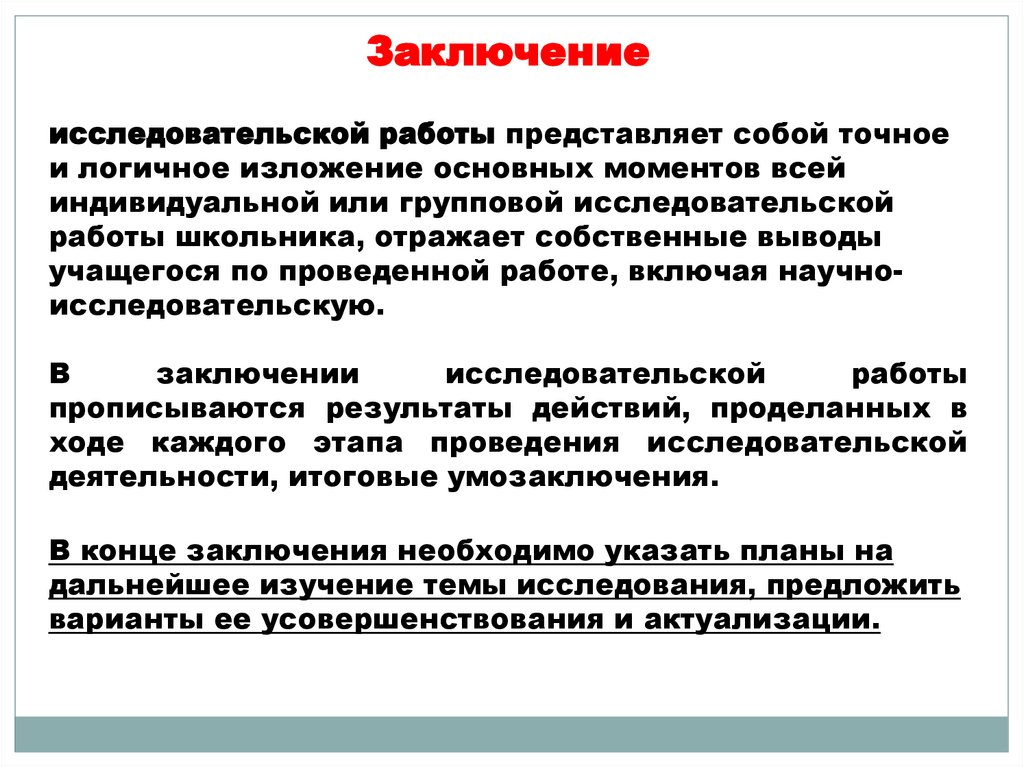 Заключениеисследовательской работы представляет собой точное