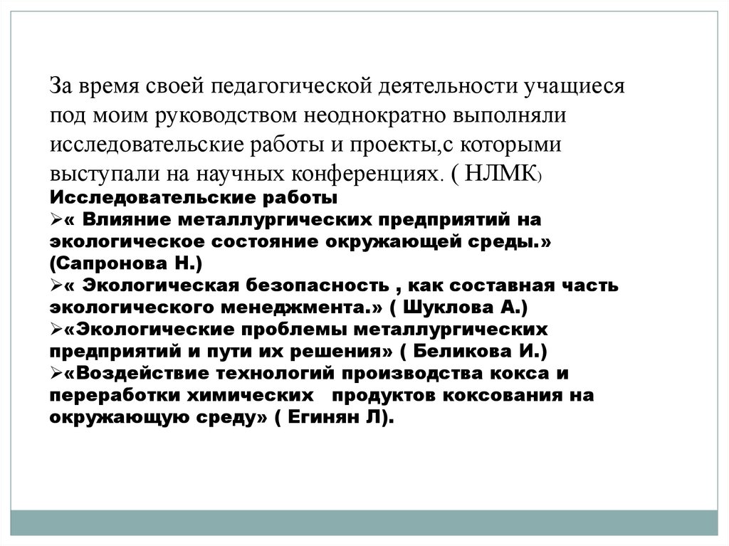 выступали на научных конференциях. ( НЛМК)