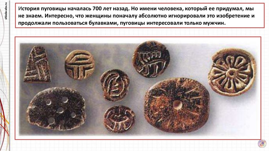 shkola-abv.ruИстория пуговицы началась 700 лет назад. Но имени человека, который ее придумал, мы