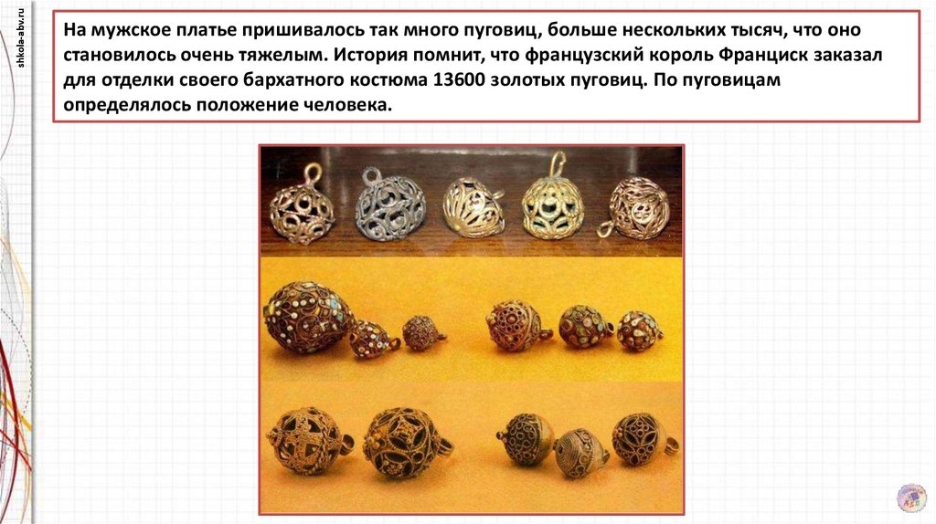 shkola-abv.ruНа мужское платье пришивалось так много пуговиц, больше нескольких тысяч, что оно
