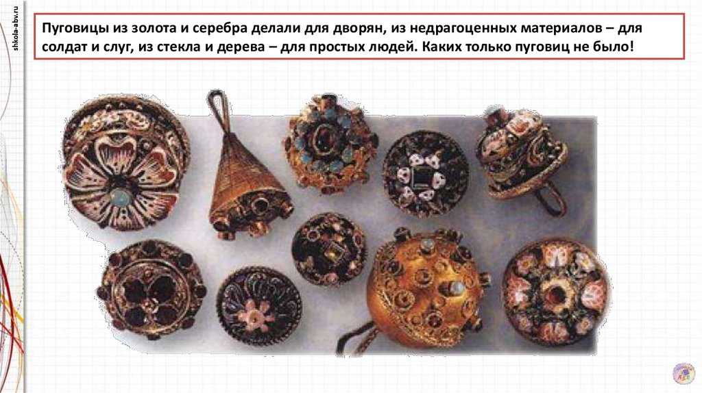 shkola-abv.ruПуговицы из золота и серебра делали для дворян, из недрагоценных материалов – для