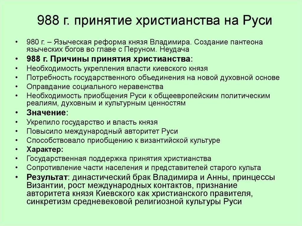 • 988 г. Причины принятия христианства: