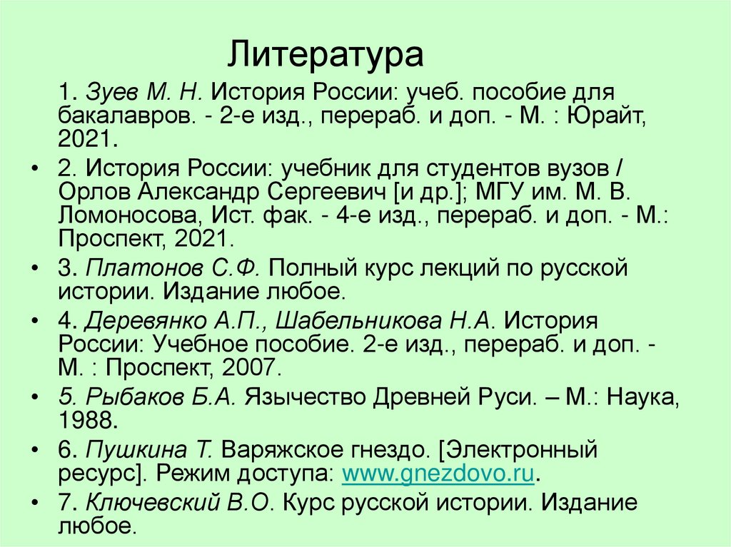 1. Зуев М. Н. История России: учеб. пособие для