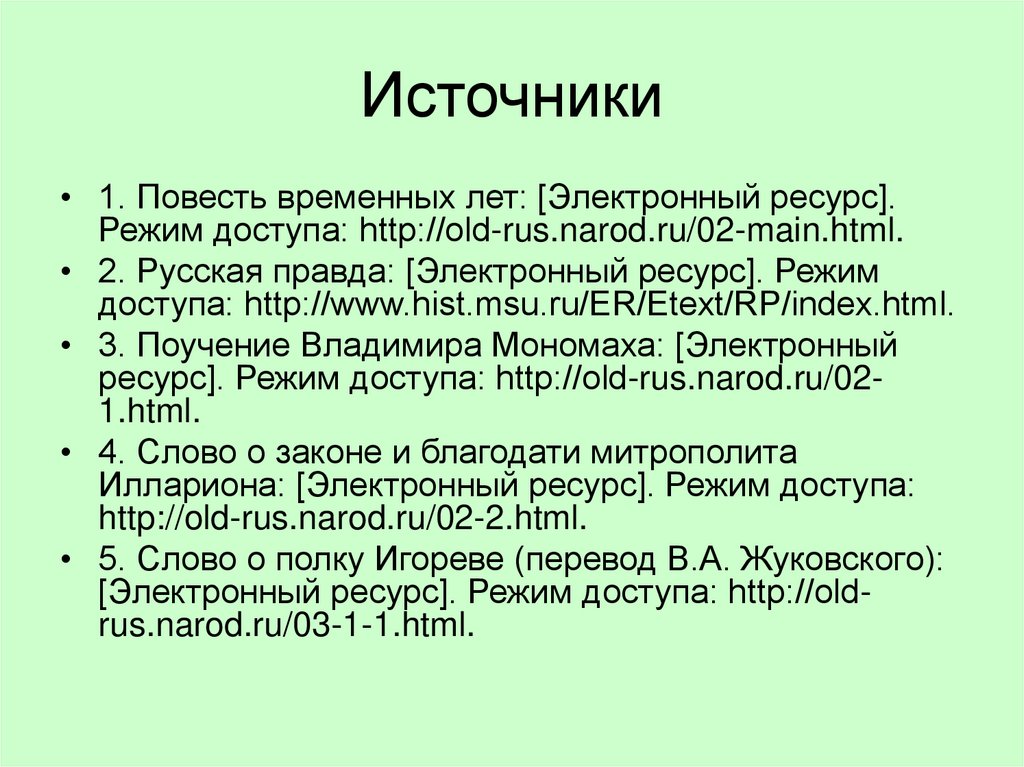 • 1. Повесть временных лет: [Электронный ресурс].Режим доступа: http://old-rus.narod.ru/02-main.html.