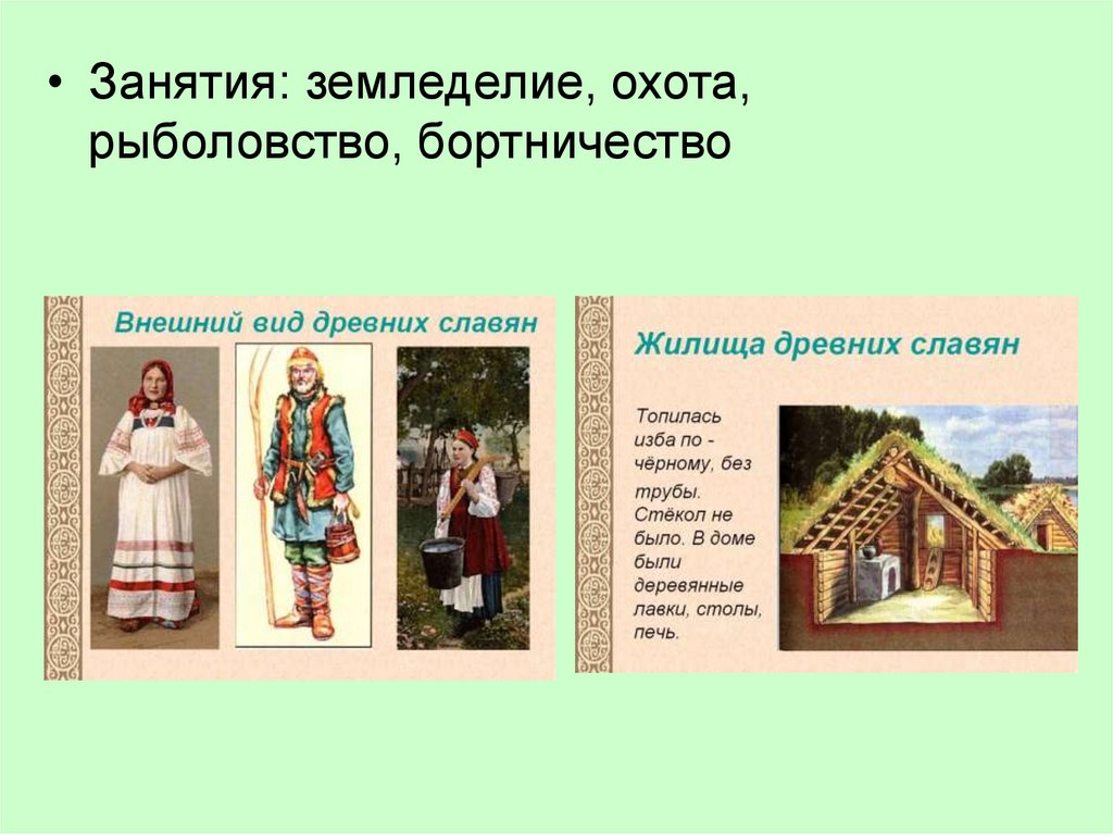 • Занятия: земледелие, охота,рыболовство, бортничество