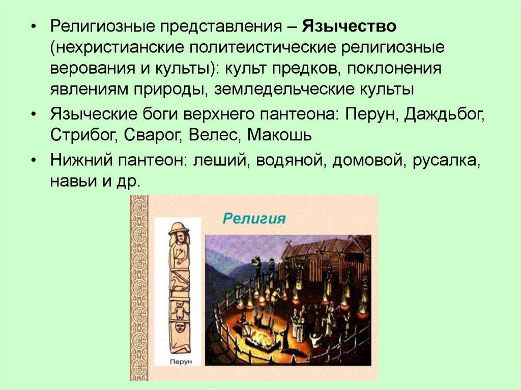 • Религиозные представления – Язычество(нехристианские политеистические религиозные
