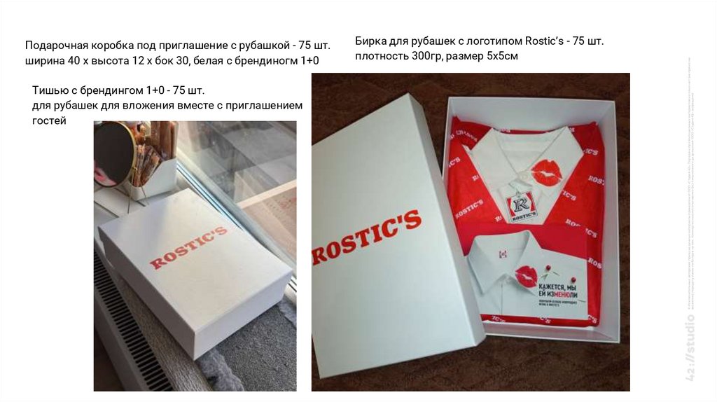 Тишью с брендингом 1+0 - 75 шт.для рубашек для вложения вместе с приглашением