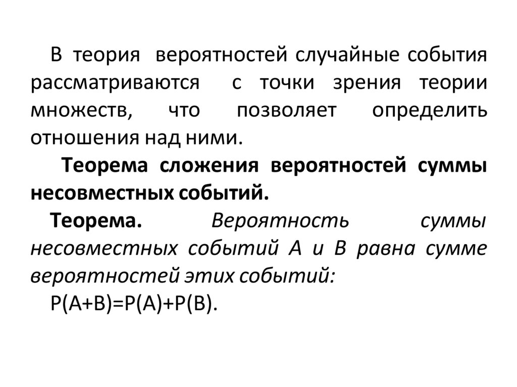 Теорема сложения вероятностей суммы