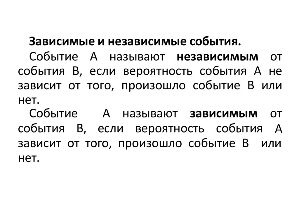 Зависимые и независимые события.Событие A называют независимым от