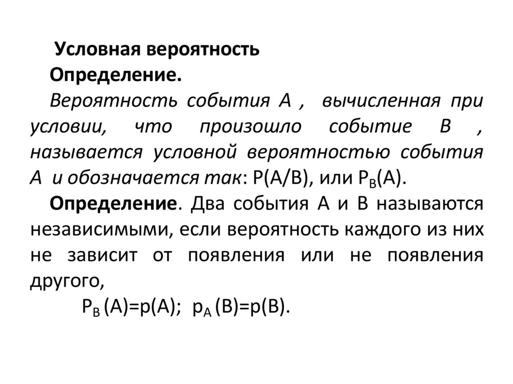 10. Условная вероятность. События, независимые в совокупности.