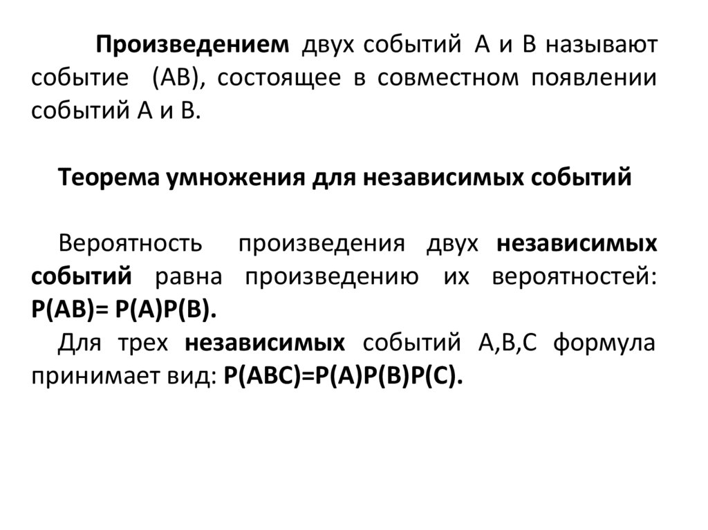 принимает вид: P(ABC)=P(A)P(B)P(C).
