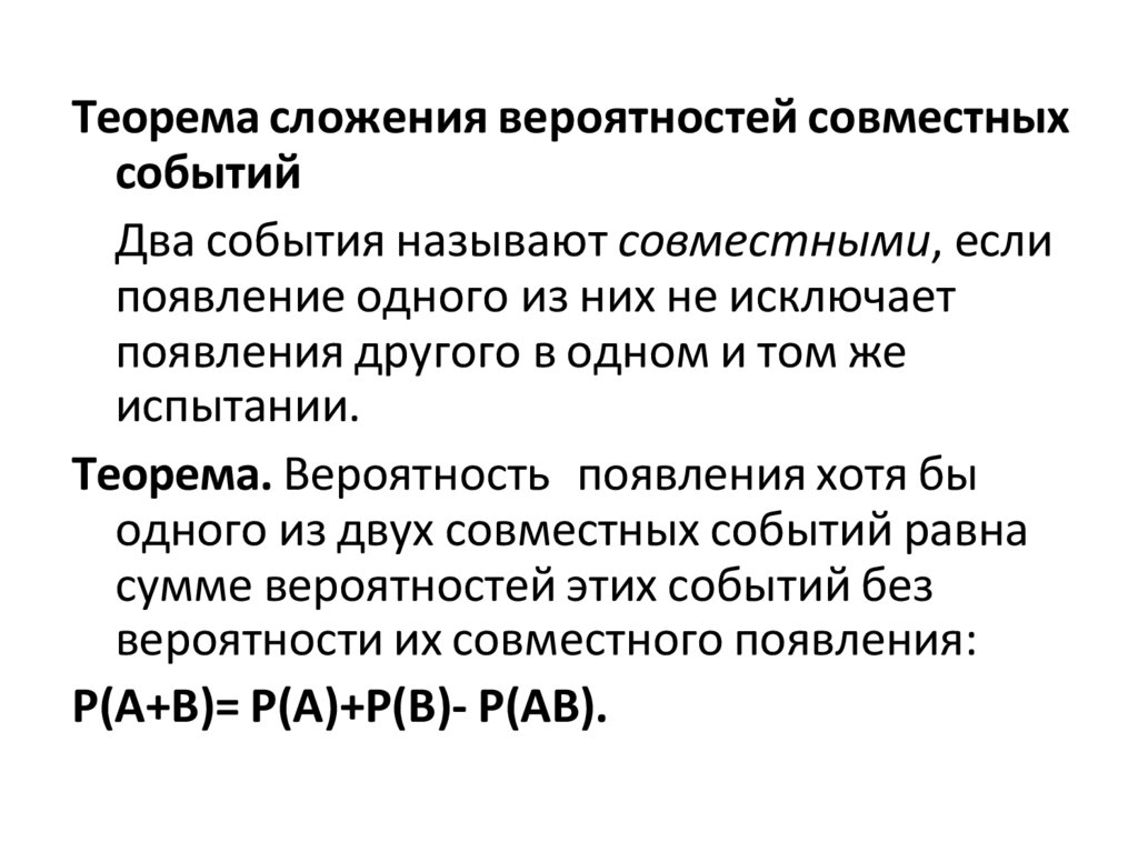 Теорема сложения вероятностей совместныхсобытий