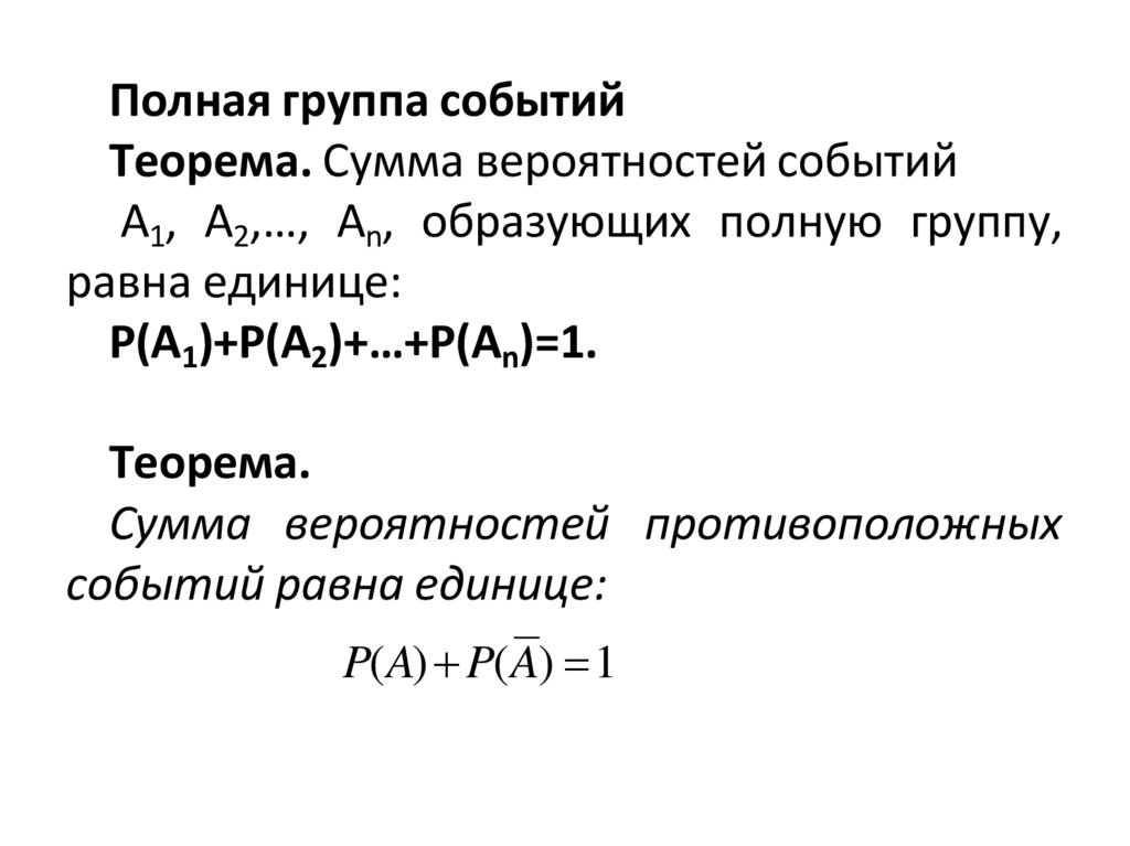 A1, A2,…, An, образующих полную группу,равна единице: