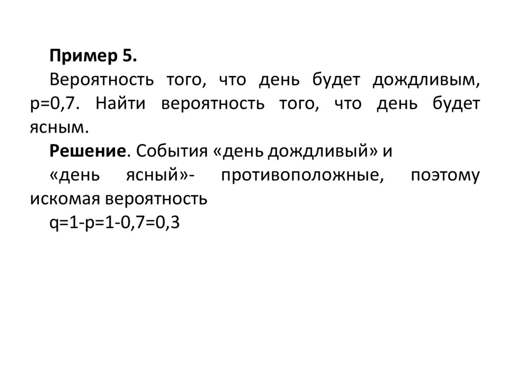 Пример 5.Вероятность того, что день будет дождливым,