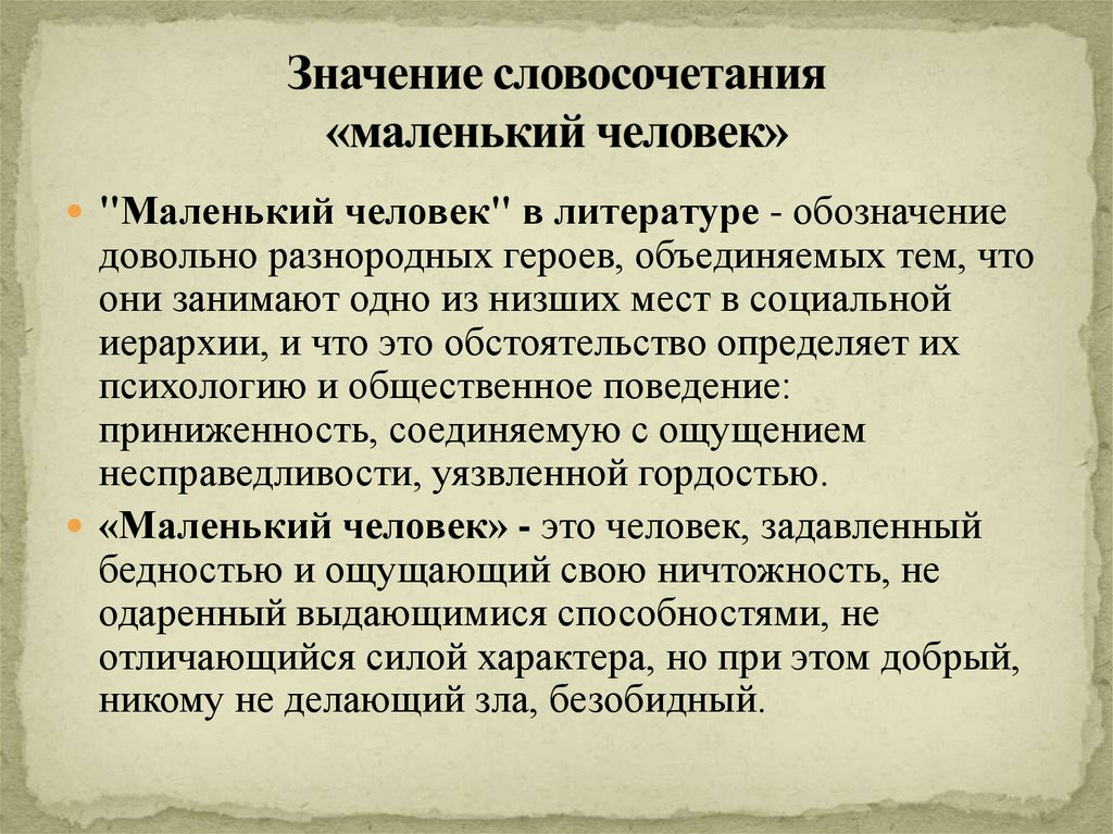 2. Значение словосочетания «маленький человек»