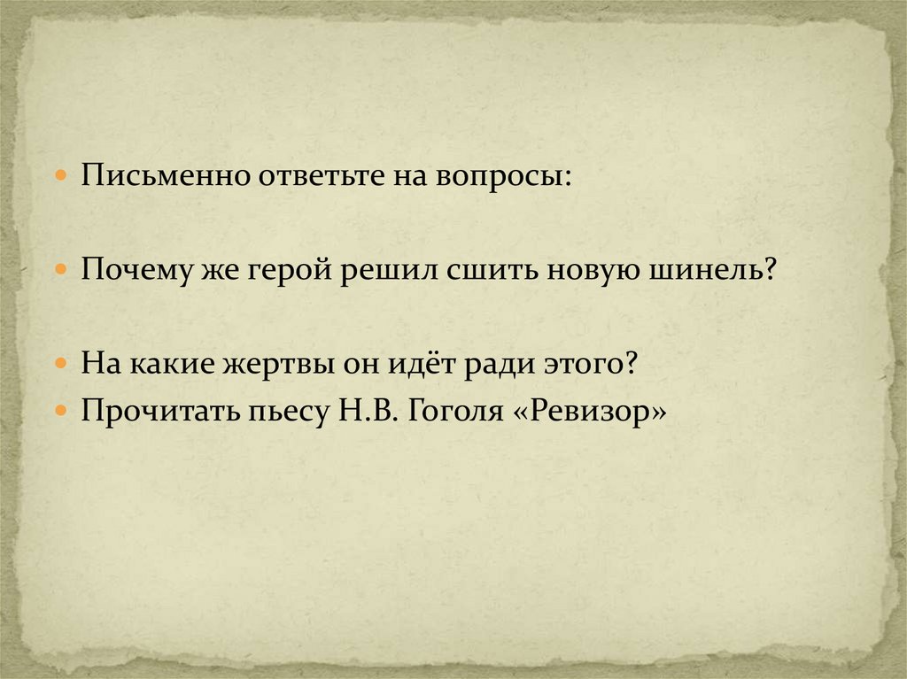 Письменно ответьте на вопросы:Почему же герой решил сшить новую шинель?