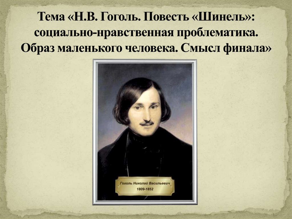 3. Тема «Н.В. Гоголь. Повесть «Шинель»: социально-нравственная проблематика. Образ маленького человека. Смысл финала»