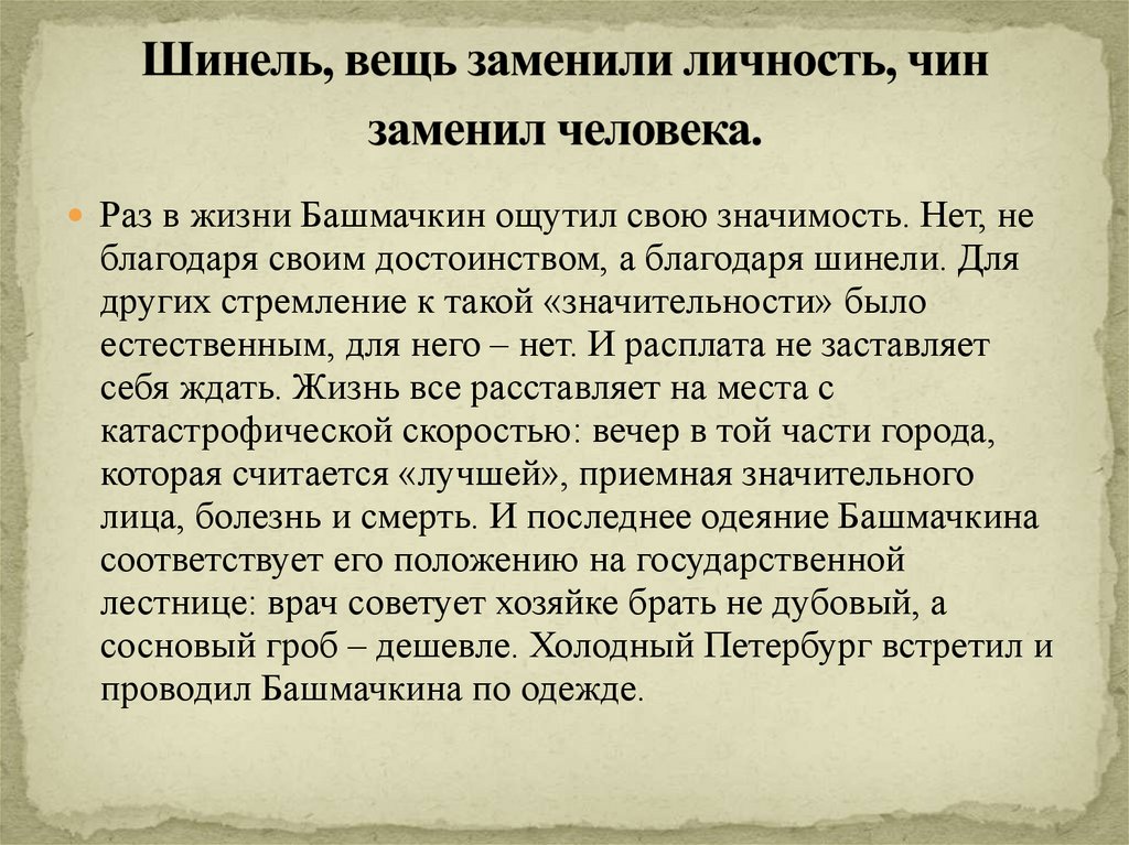 8. Шинель, вещь заменили личность, чин заменил человека.