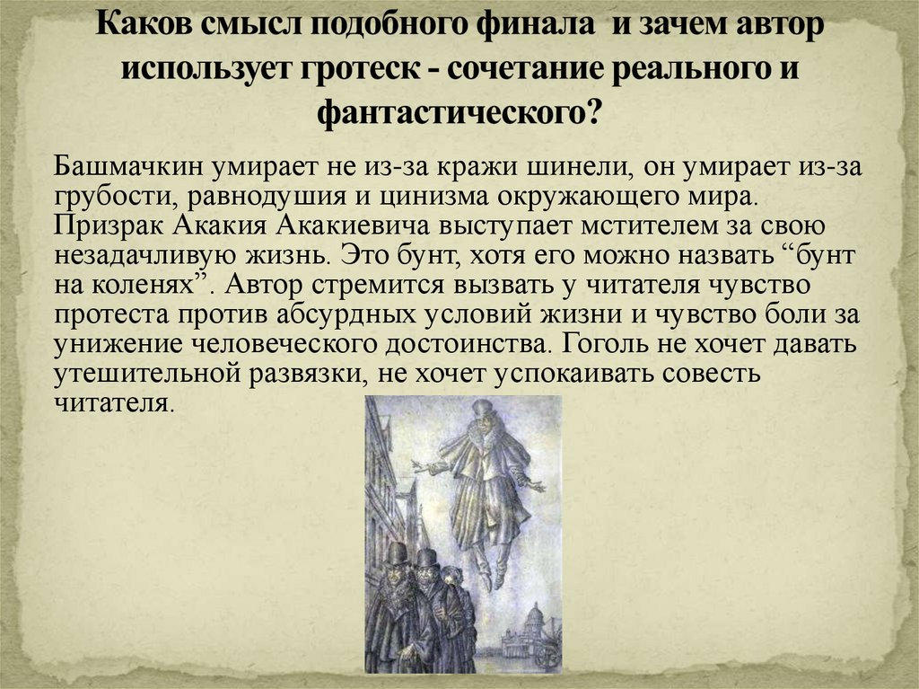 10. Каков смысл подобного финала и зачем автор использует гротеск - сочетание реального и фантастического?