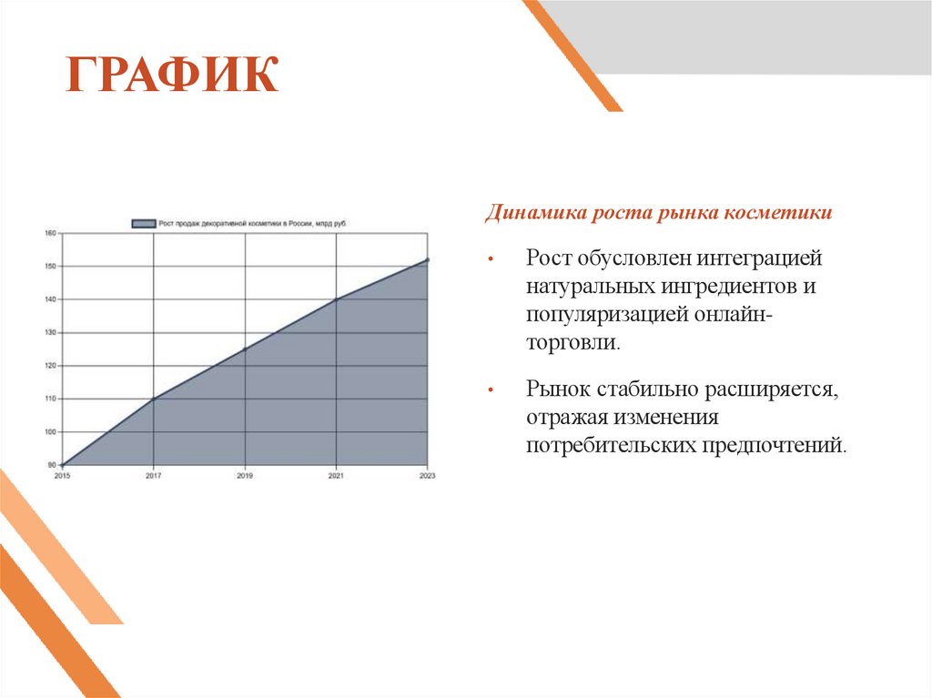 Динамика роста рынка косметикиРост обусловлен интеграцией