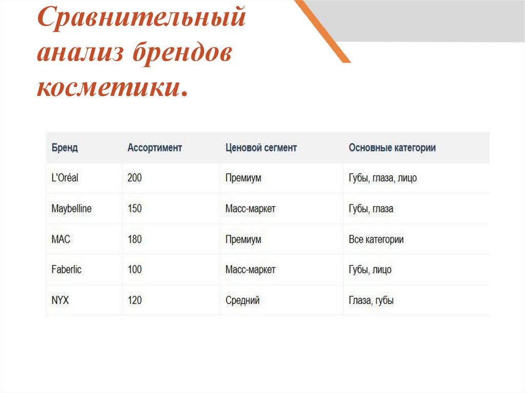 5. Сравнительный анализ брендов косметики.