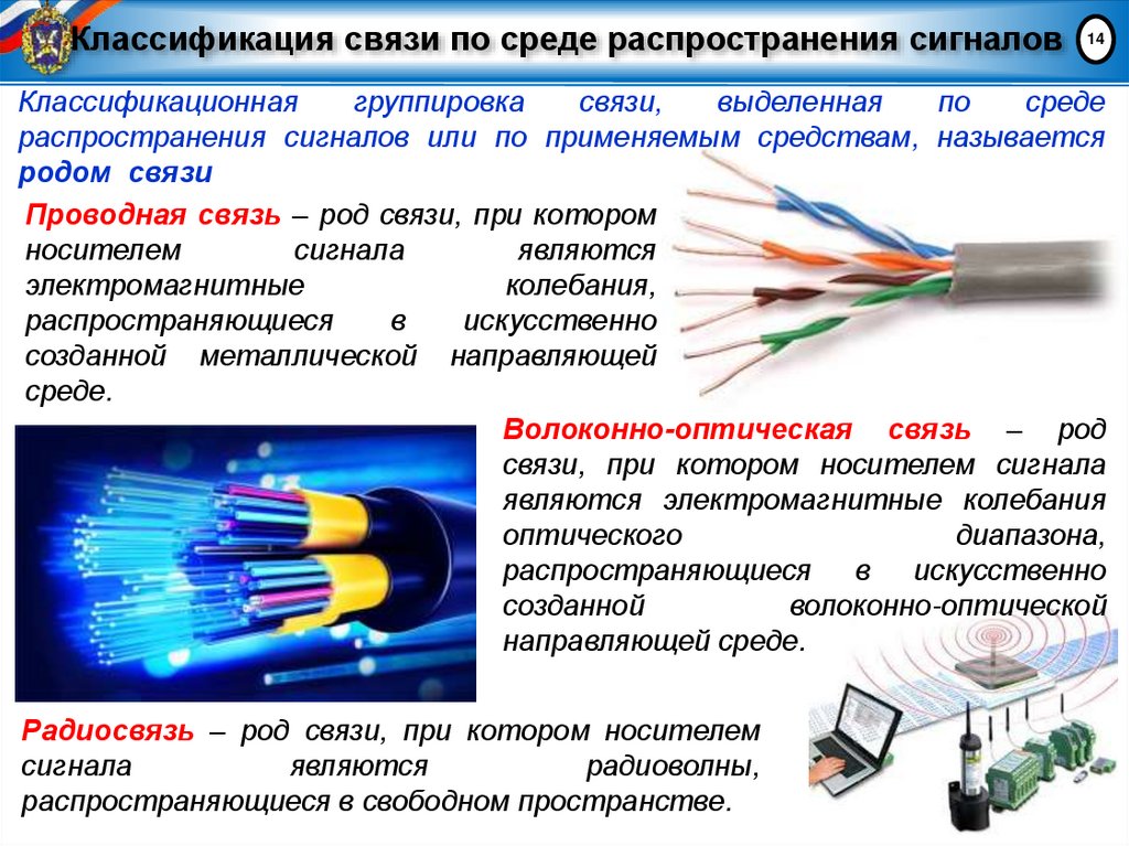 помощью электромагнитных сигналов: по медным проводам, волоконнооптическому кабелю или по радио.
