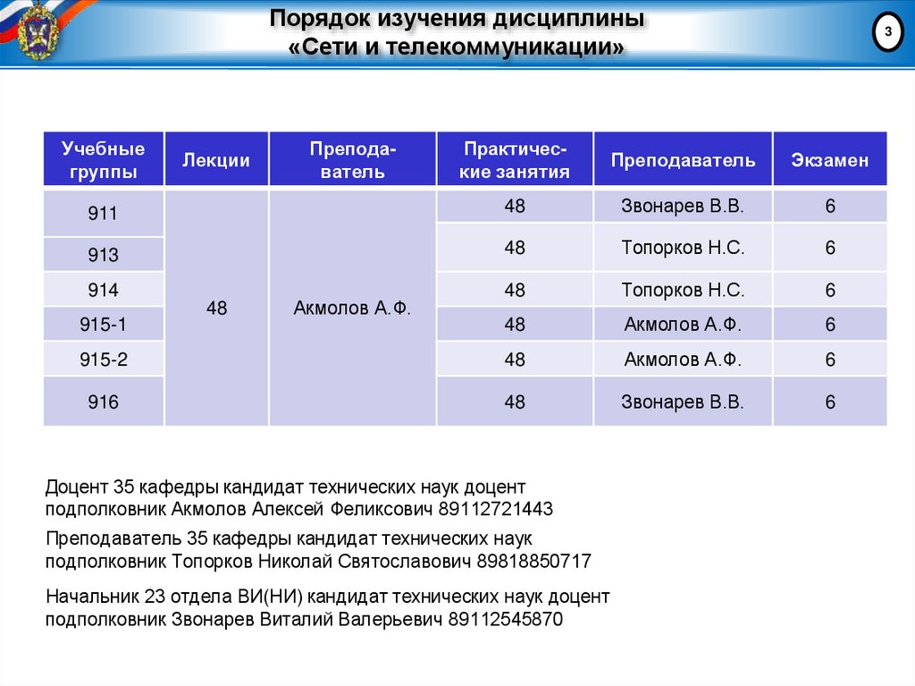 3. Порядок изучения дисциплины «Сети и телекоммуникации»