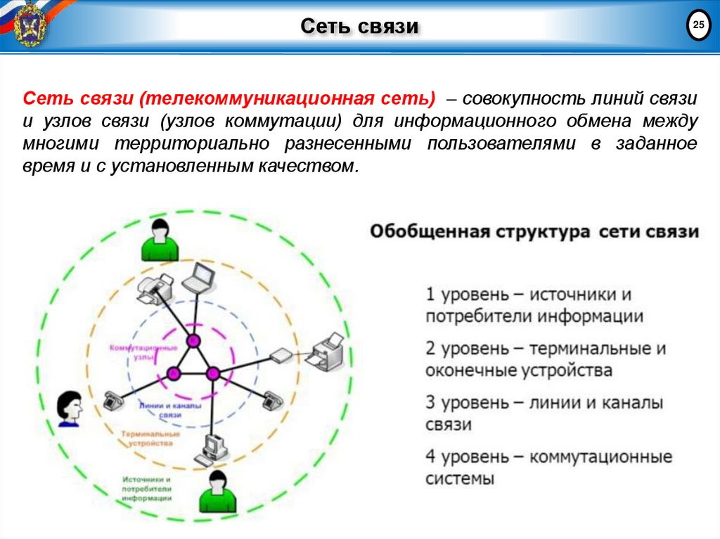 25Сеть связи (телекоммуникационная сеть) – совокупность линий связи