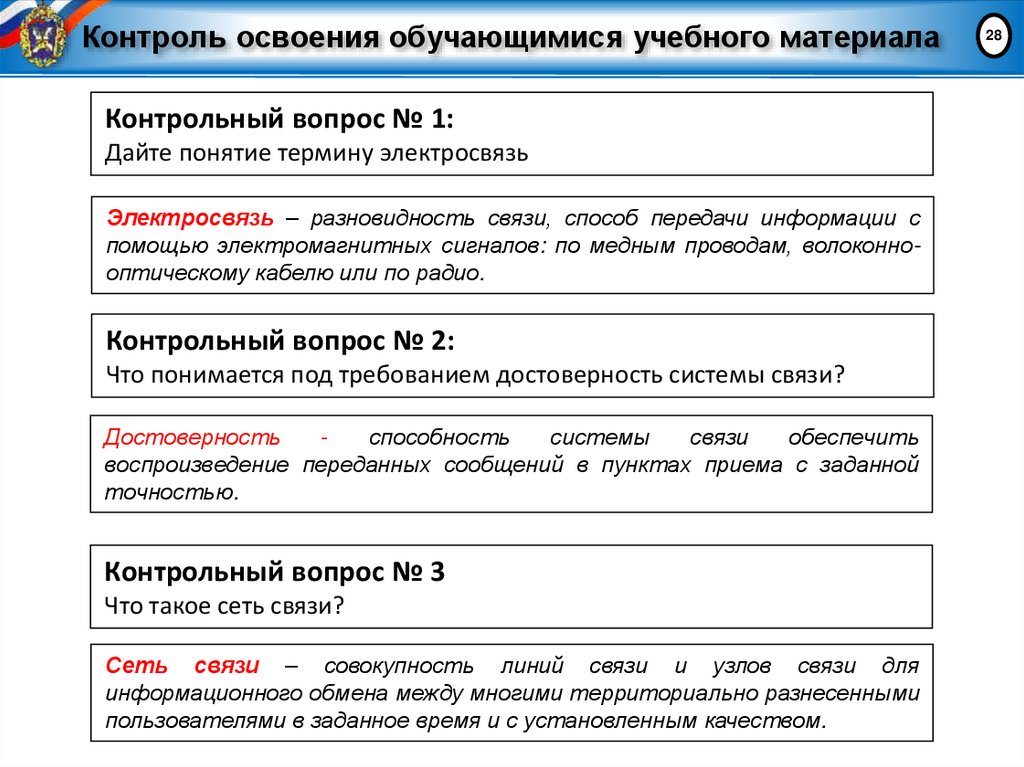 Контрольный вопрос № 1:Дайте понятие термину электросвязь