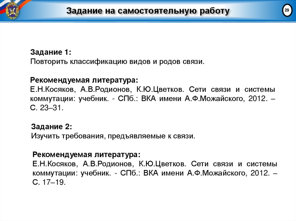 ВОЕННО-КОСМИЧЕСКАЯ АКАДЕМИЯ ИМЕНИ А.Ф. МОЖАЙСКОГО35 кафедра сетей и систем связи космических комплексов