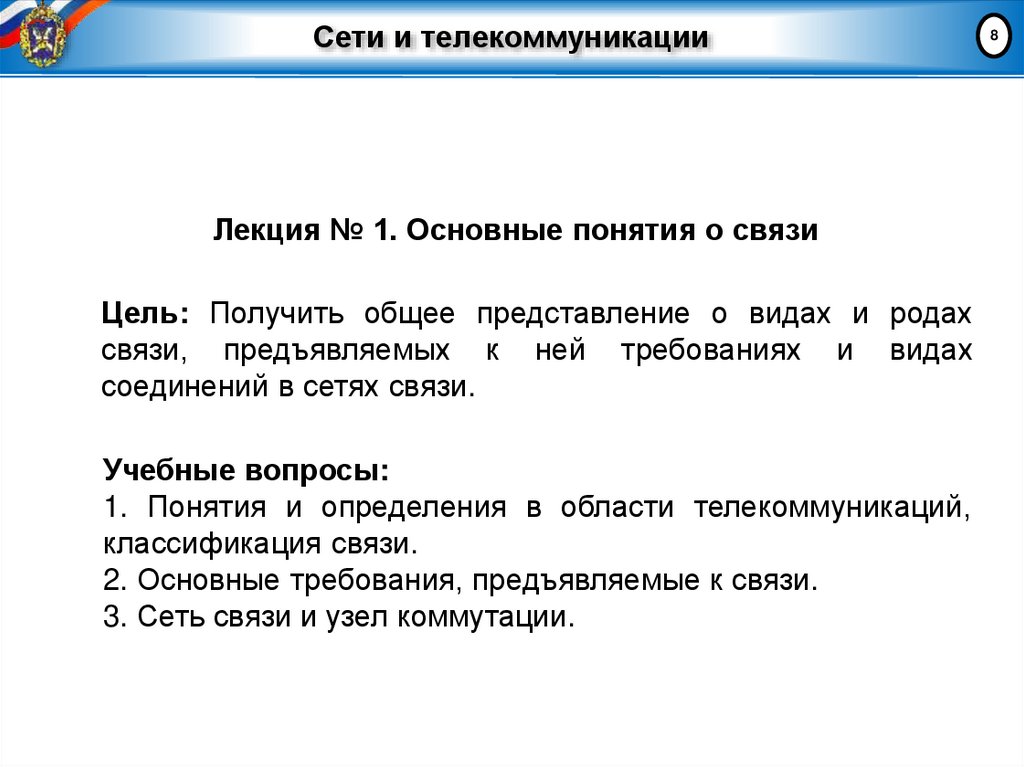 Лекция № 1. Основные понятия о связиЦель: Получить общее представление о видах и родах