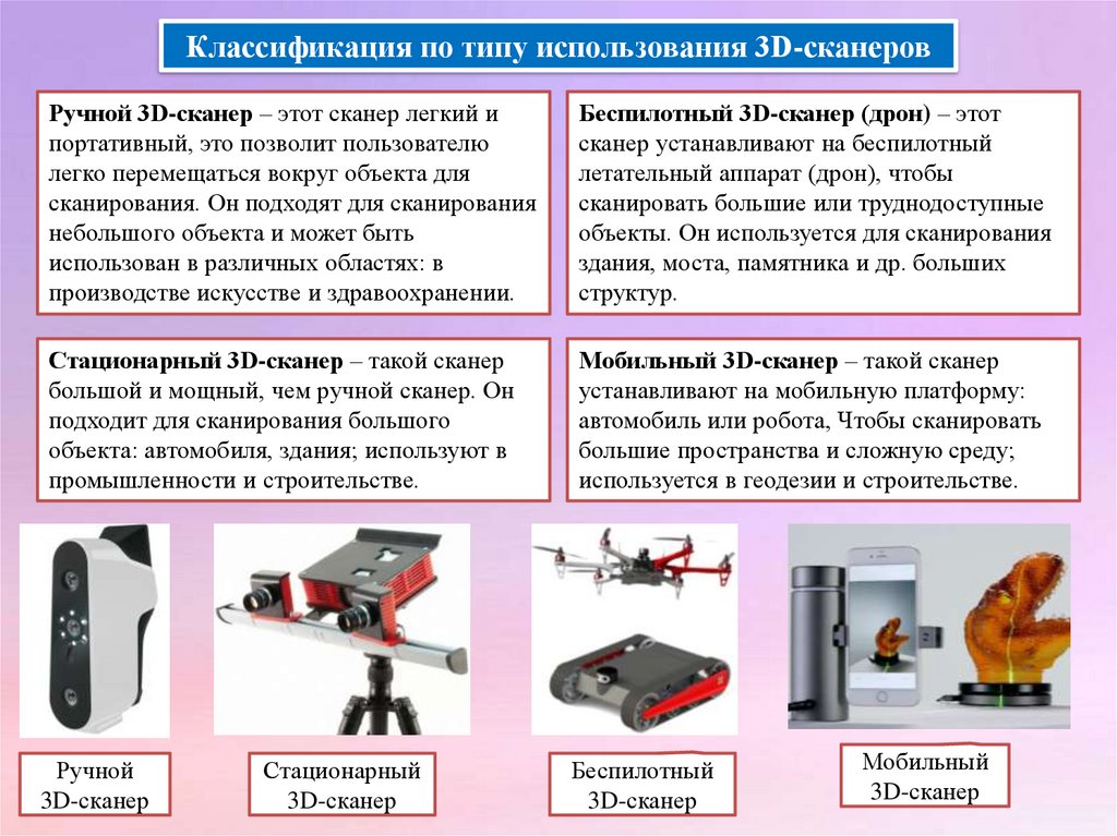 Классификация по типу использования 3D-сканеровРучной 3D-сканер – этот сканер легкий и
