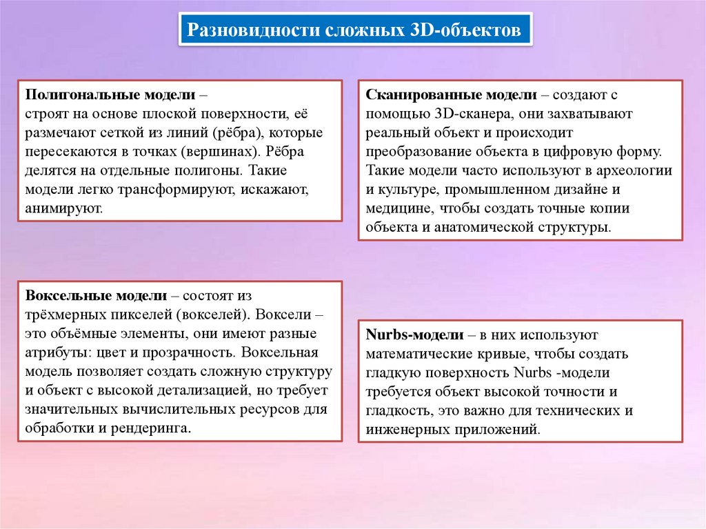 Разновидности сложных 3D-объектовПолигональные модели –