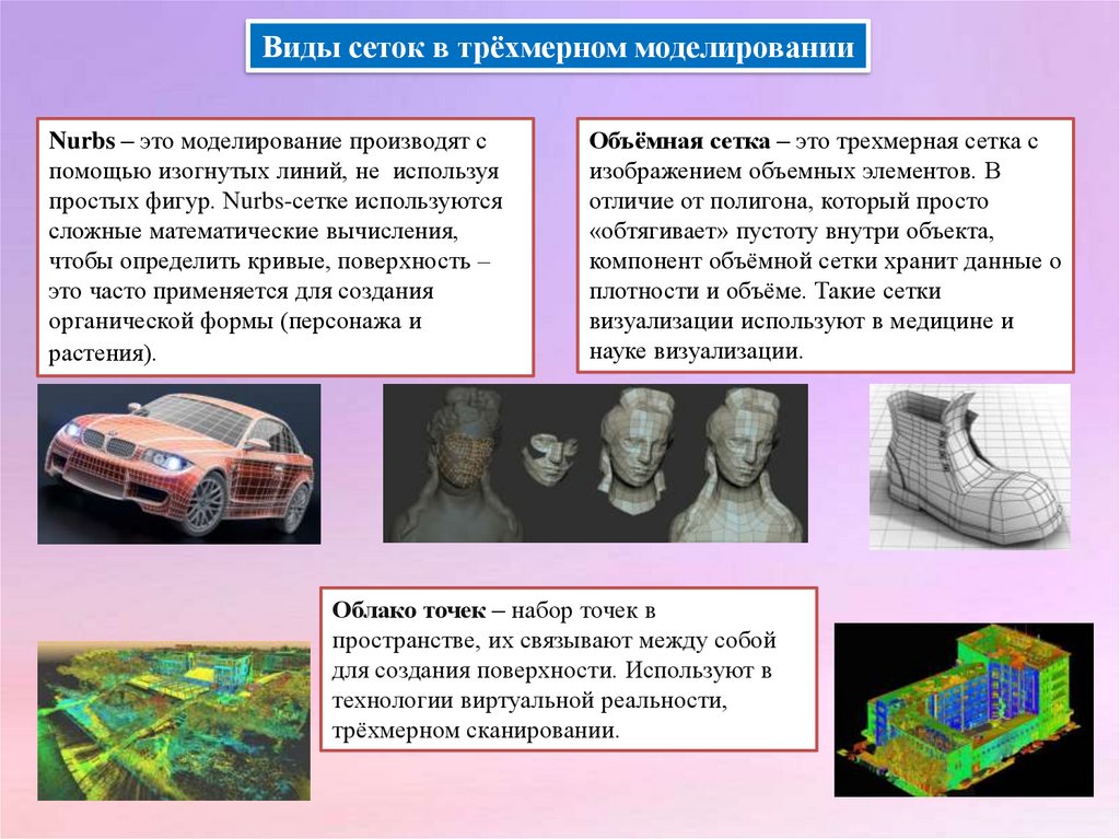 Виды сеток в трёхмерном моделированииNurbs – это моделирование производят с