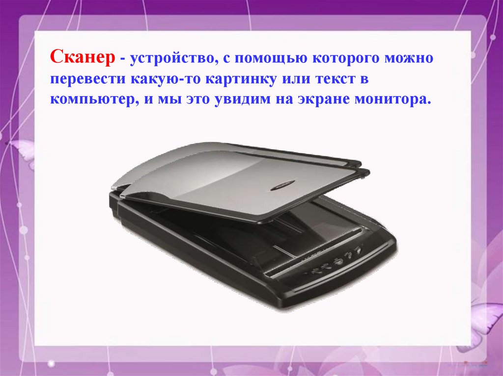 Сканер - устройство, с помощью которого можноперевести какую-то картинку или текст в