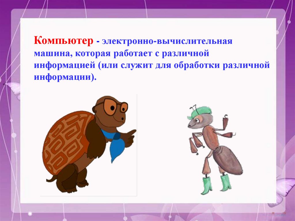 Компьютер - электронно-вычислительнаямашина, которая работает с различной