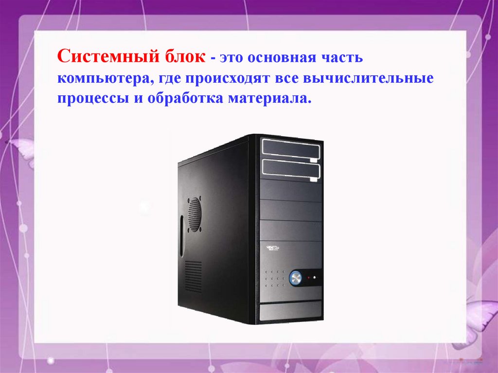 Системный блок - это основная частькомпьютера, где происходят все вычислительные